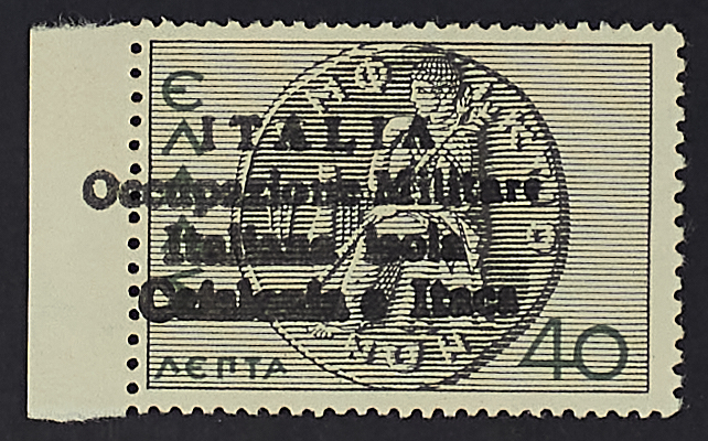 1941 - Miti 40 l. soprastampa a mano bordo di foglio a sinistra - Traccia di linguella sul solo margine - Firma Sorani