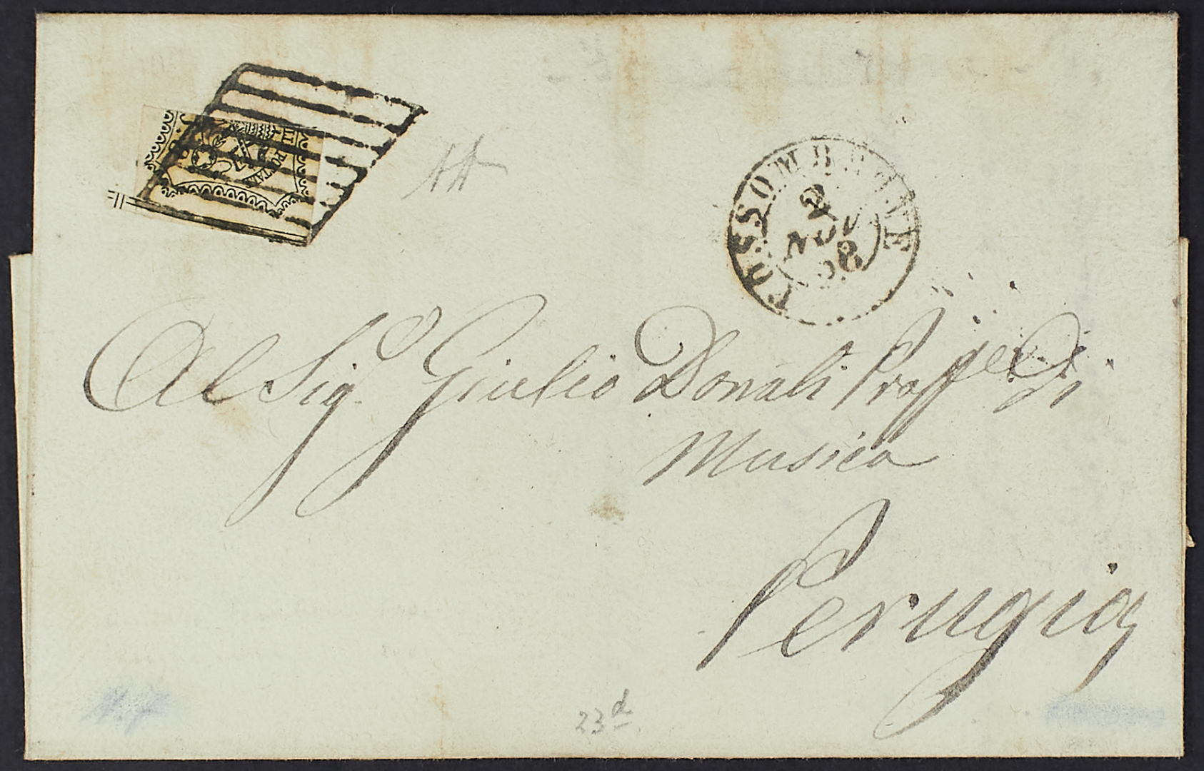 8 BAJ. BIANCO FRAZIONATO VERTICALMENTE A METà PER IL PORTO DI 4 BAJ. SU LETTERA