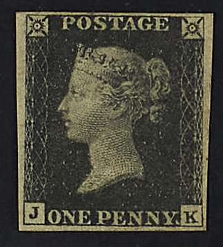 1840 - Prima emissione 1 p. nero con filigrana capovolta - Minime sfaldature della gomma ma esemplare ben conservato - Di grande rarità - Cert. Behr