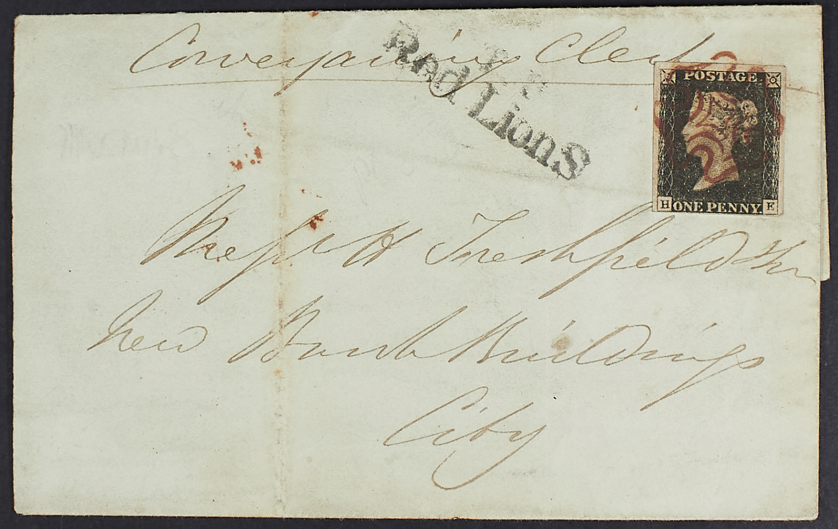 1840 - Prima emissione 1 p. nero su lettera dell'8 maggio (terzo giorno d'uso) da Londra per città - Rara - Cert. BPA