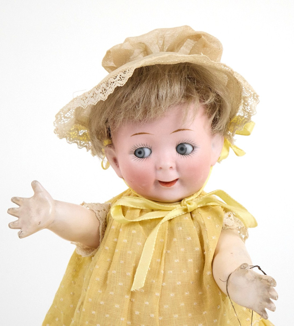 marked 163, porcelain head by Hertel & Schwab, Googlie composition body by Kammer & Reinhardt, original clothes.