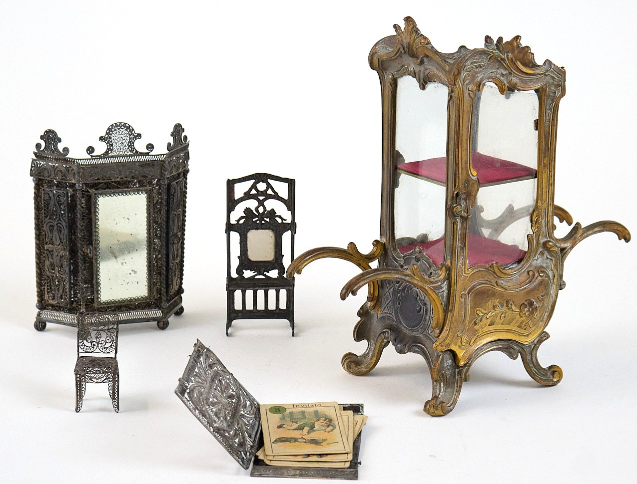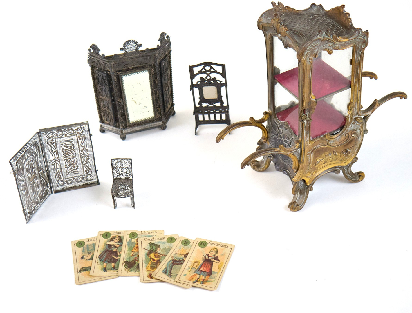 Set of dollhouse furniture and French sedan chair 20s/40s