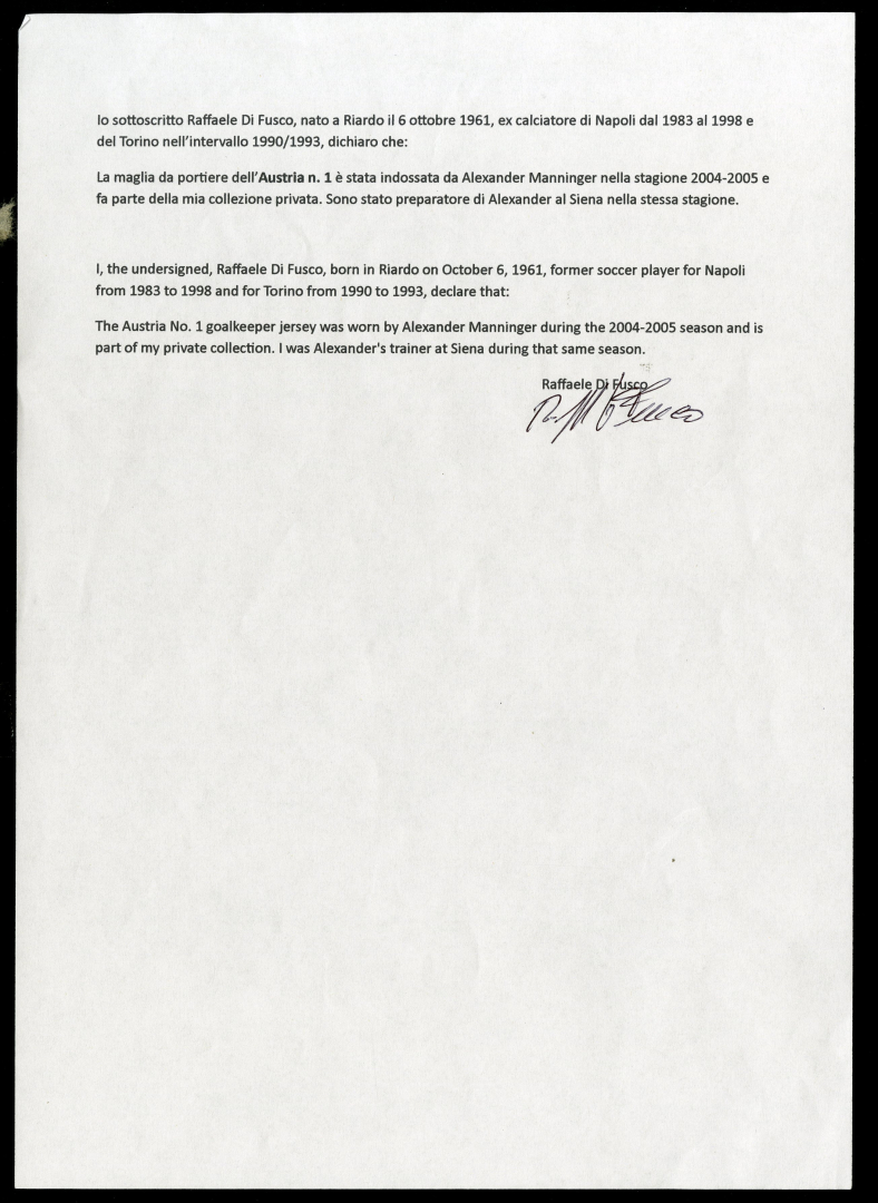 Provenance: Raffaele Di Fusco, Alexander Manninger's coach at Siena in the 2004-2005 season.
