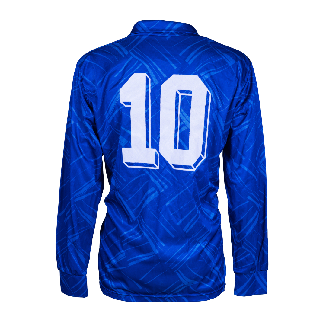 Jersey worn by Karapialis during the qualifying match for the 1992 European Football Championship in Sweden, Greece vs. Netherlands (0-2) on December 4, 1991, played in Thessaloniki and exchanged at the end of the match with opponent Aron Winter.