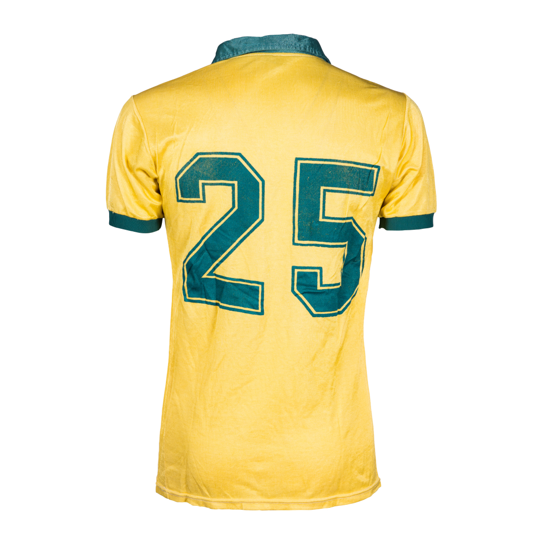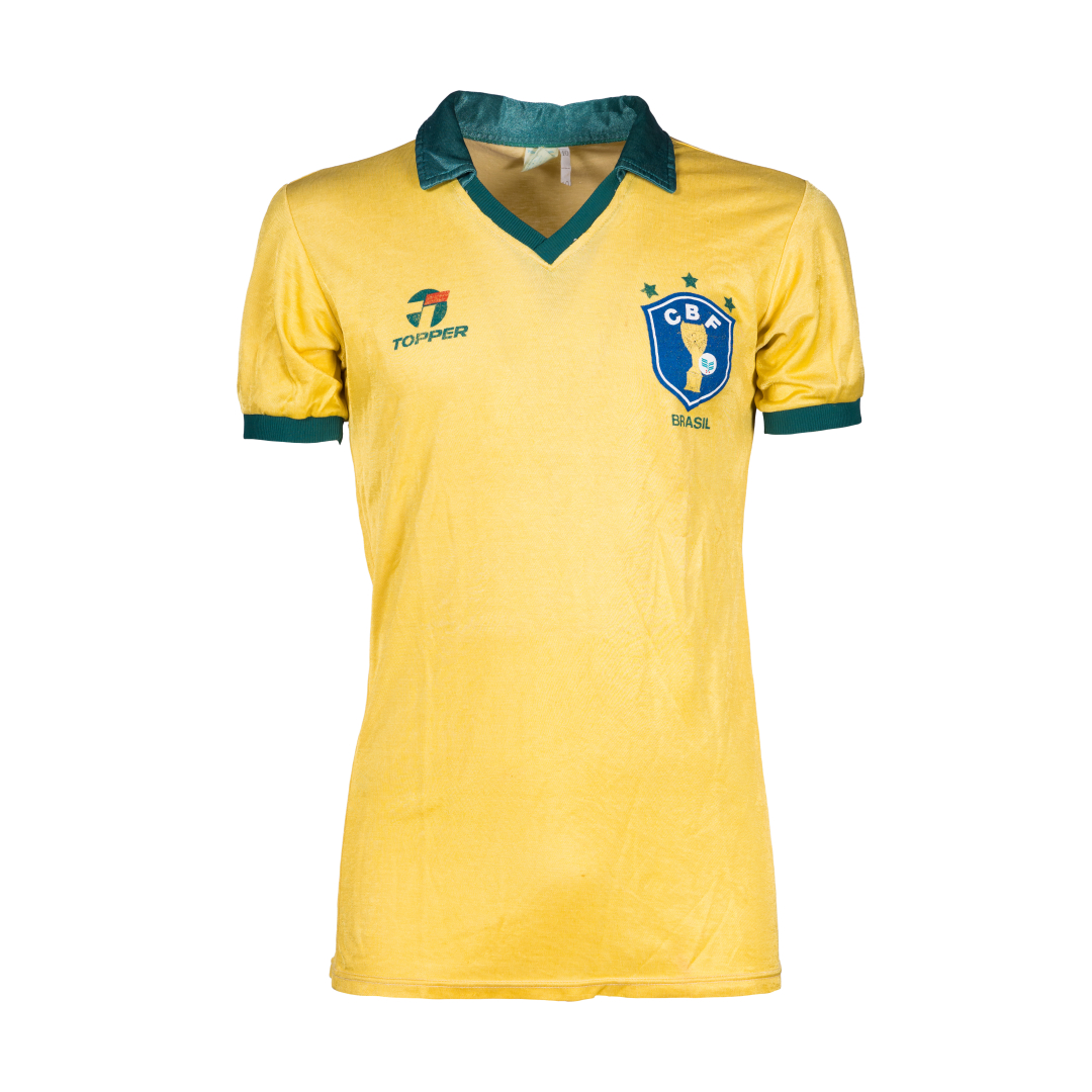Jersey worn on the bench during the friendly match between Brazil and Yugoslavia (4-2) on April 30, 1986, played in Brazil and exchanged at the end of the match with opponent Milos Bursac.