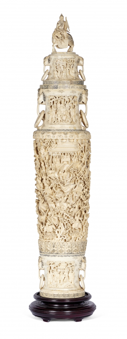 PAIR OF MONUMENTAL IVORY VASES China, Canton, 19th-20th Century