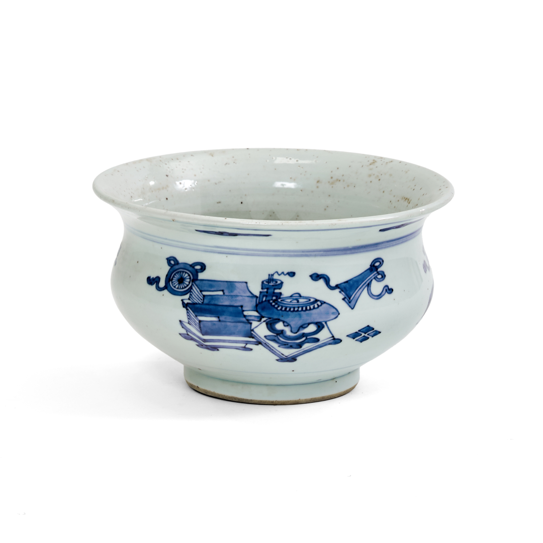 'Blue and white' porcelain, the exterior of the wall with auspicious objects.