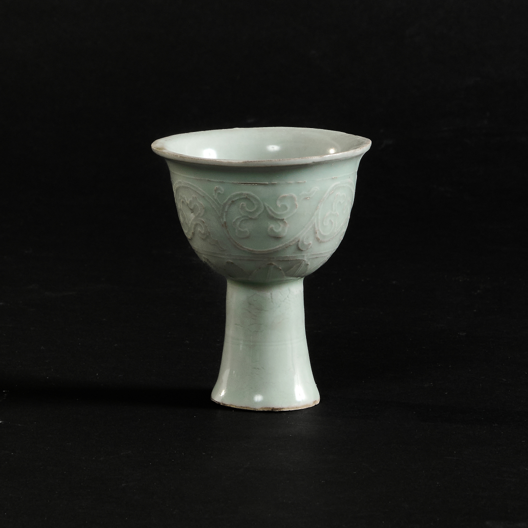 Porcelain with qingbai glaze, relief decoration of floral motifs.