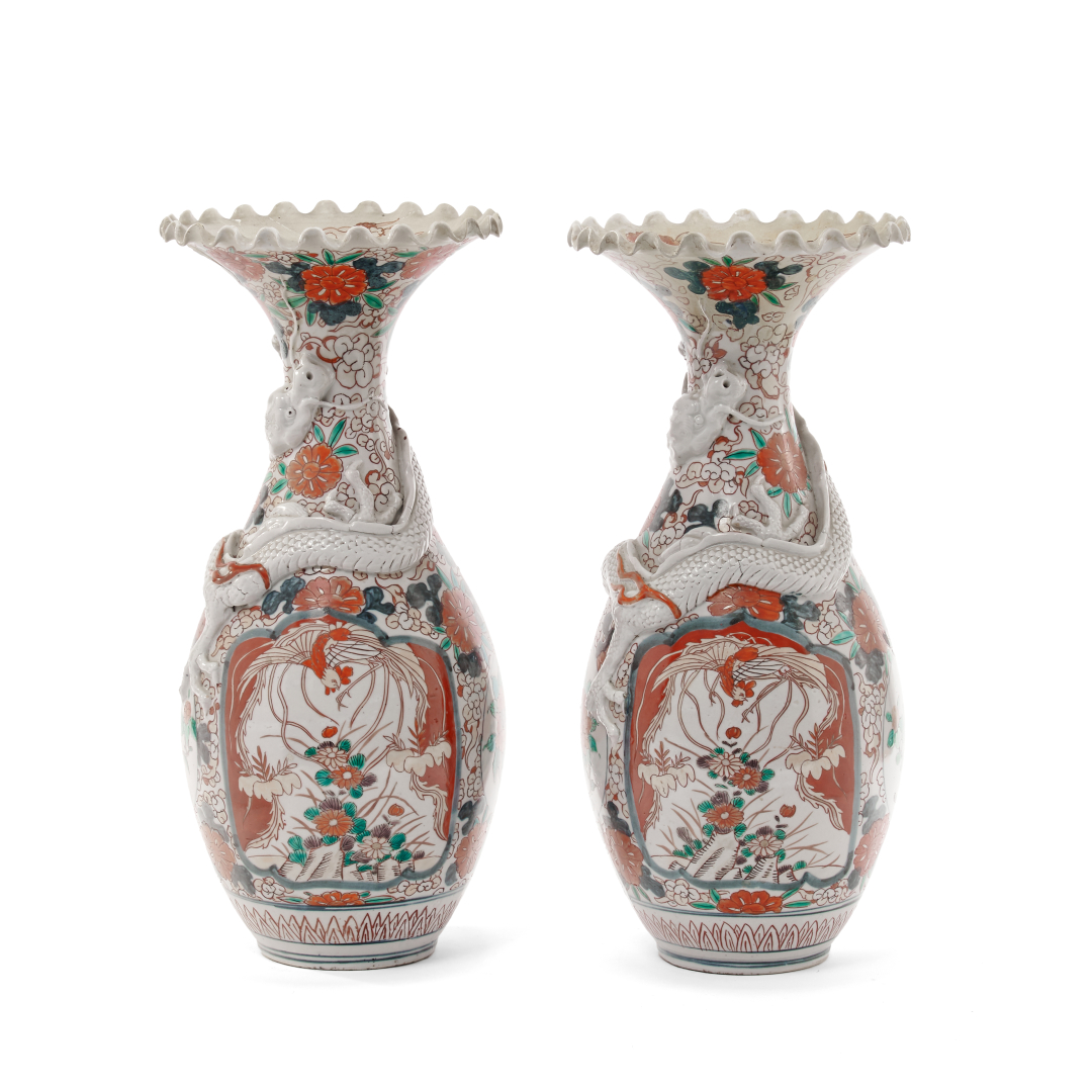 Porcelain painted with polychrome enamels with a decoration of floral motifs and mythological animals, the shoulders and neck with a dragon in accentuated relief.