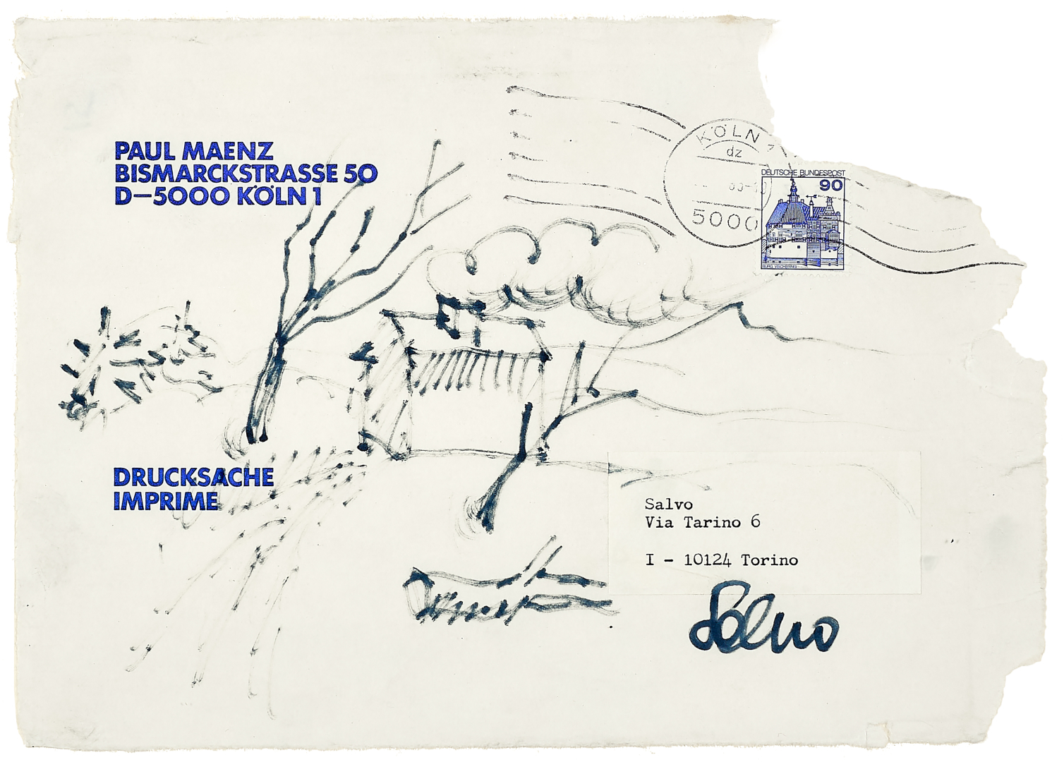 Signed lower right recto on an envelope from the Paul Maenz Gallery, Cologne.
