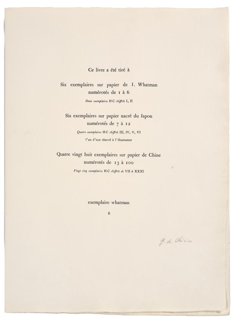 A. Ciranna, Giorgio De Chirico. Catalogo delle opere grafiche (incisioni e litografie) 1921-1969, Edizioni Alfonso Ciranna, Milano e Edizioni la Medusa, Roma 1969, pag. 17 nr. 87.