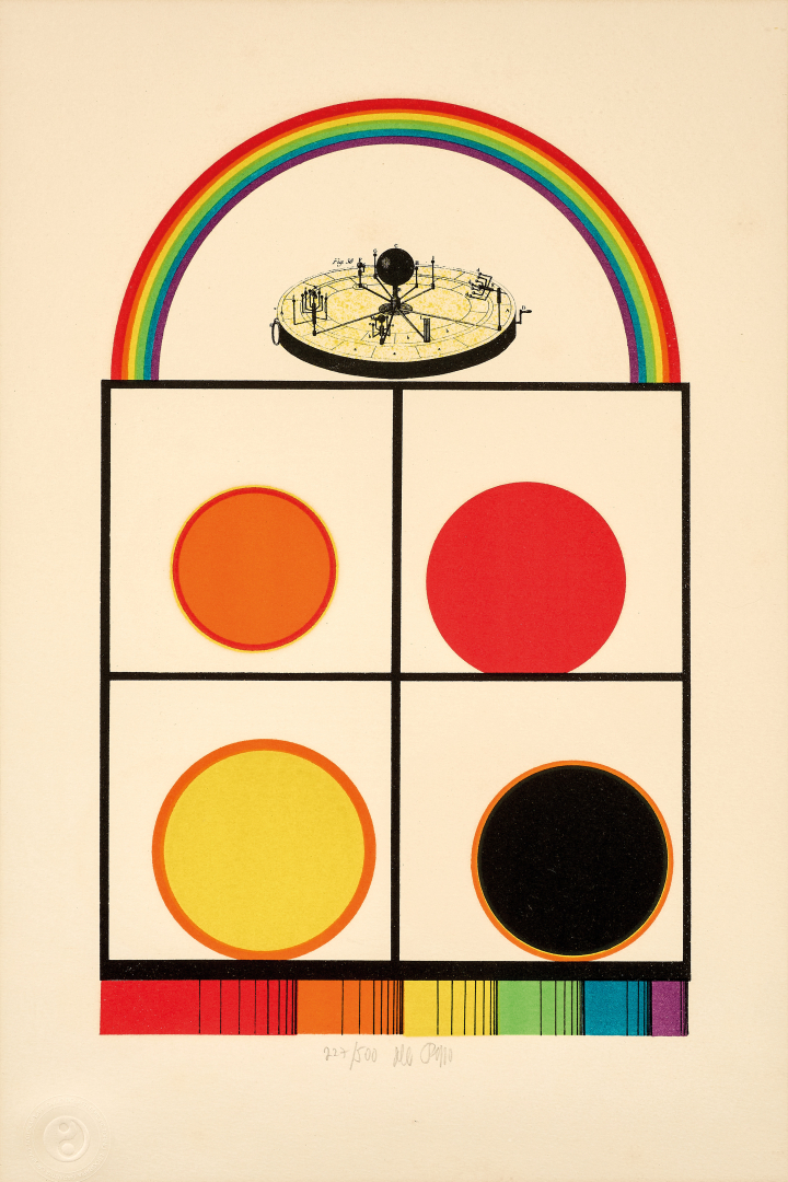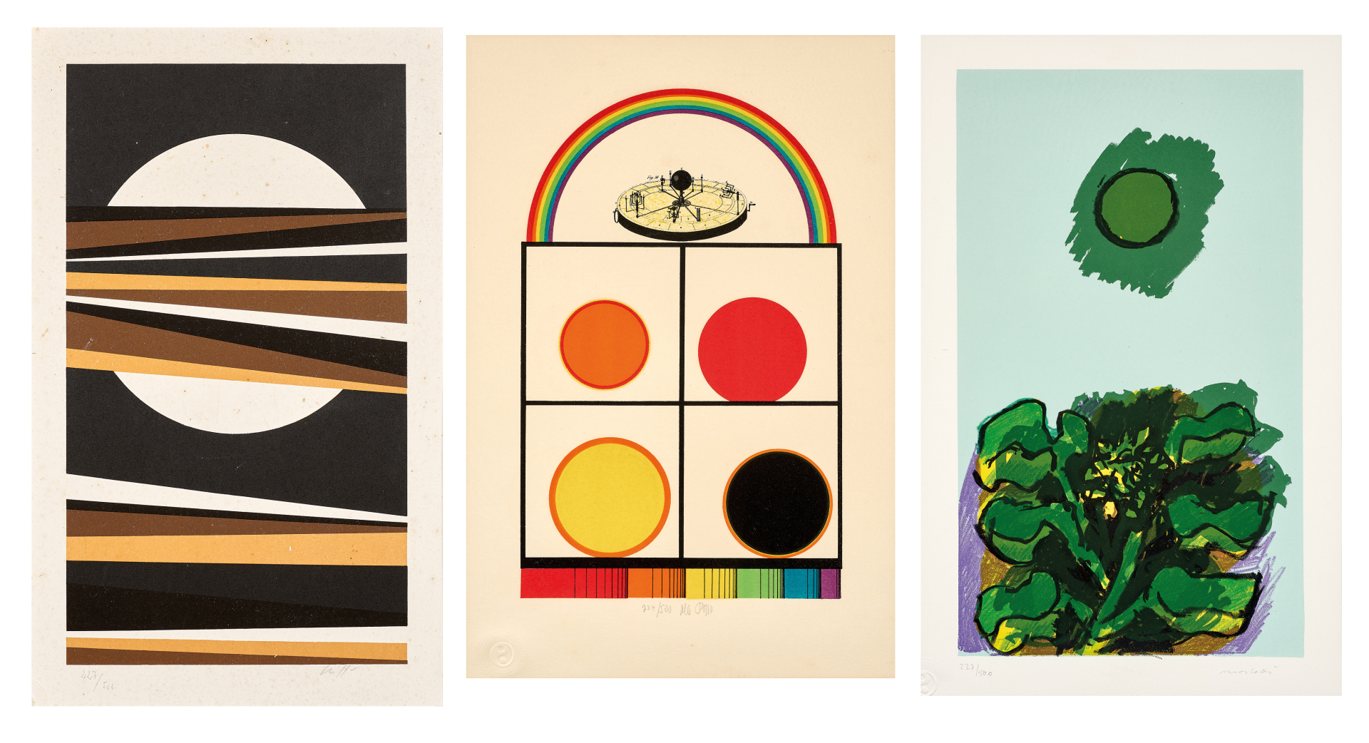 Lot completed by: Lucio Del Pezzo, colour lithograph, ed. 227/500, 18.31 x 12.01 in., signed and numbered lower center recto, dry stamp from Bolaffi Editore on the left. (3)