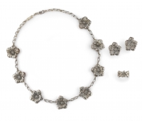 formata da un girocollo, un paio di orecchini a clip e un anello con motivo a fiori. Firmati Gianmaria Buccellati. In scatole originali.