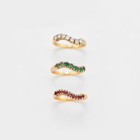 in oro giallo, una in diamanti per complessivi ct 0,35 ca., una in smeraldi per complessivi ct 0,30 ca. e una in rubini per complessivi ct 0,40 ca.