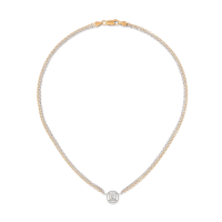 in oro bicolore formato da due catene rolò che trattengono un castone rotondo con diamante taglio brillante di ct 0,45 ca.