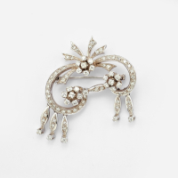 in oro bianco con pavé di diamanti taglio huit-huit e perla.