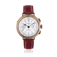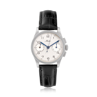 Quadrante: firmato, in smalto bianco, numeri dipinti, secondi continui, contatore 30 minuti, scala