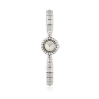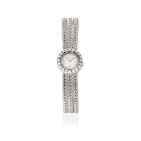 Cassa: firmata, n. 813658 A, in oro bianco 18K, fondello a scatto, corona sul retro, lunetta incastonata con 24 diamanti.