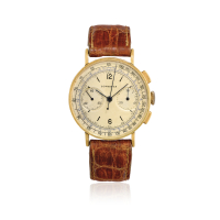 Cassa: firmata, n. 1602 109, in oro 18K, fondello a scatto, pulsante a slitta per l’arresto del cronografo.