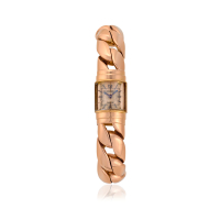 Cassa: firmata LC, n. 62814 A, in oro rosa 18K, fondello a cerniera, corona sul retro, cassa e vetro cilindrici. Quadrante: firmato, color salmone, indici stampati. Movimento: firmato, calibro manuale 403, n. 111710.