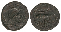 As. 120-20 a.C. CESE (TARRAGONA). Anv.: Cabeza barbada a derecha. Rev.: Jinete con palma a derecha, debajo leyenda ibérica. 24,50 grs. AE. Pátina oscura. RARA. AB-2269; Vill-3. MBC/MBC-.