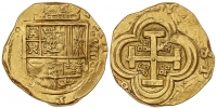 8 Escudos. SEVILLA. 27 grs. Fecha y ensayador no visibles. Punto en la intersección de la cruz del reverso. Restos de brillo original. RARÍSIMA. XC-66. EBC.