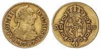 Lote 2 monedas 1/2 y 1 Escudo. 1760 y 1787. MADRID. 1/2 Escudo 1760 Madrid J.P. (descolgada) y 1 Escudo 1787 Madrid D.V. (golpes de punzón). A EXAMINAR. Cal-753, 629. BC y MBC-.