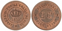 Prueba 2 Centavos. 1859. MANILA. 9,98 grs. Bonita pátina. Cal-pág.801. PRUEBA.