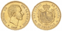 25 Pesetas. 1882/1 (*18-82). M.S.-M. Rectificación de fecha solo visible en la parte inferior central del 2. Brillo original. Cal-15; VS-111.1. SC-.