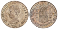 1 Peseta. 1889 (*18-89). M.P.-M. (Levísimas rayitas en anverso). Pátina irisada y brillo original. MUY RARA ASÍ. EBC+.