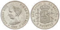 1 Peseta. 1901 (*19-01). S.M.-V: (Levísimos golpecitos en anverso). Pleno brillo original. SC-/SC.