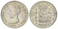 5 Pesetas. 1891 (*18-91). P.G.-M. (Manchitas en anverso). Brillo original. EBC/EBC+.