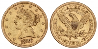 5 Dólares. 1880. 8,32 grs. AU. Coronet Head. (Pequeños golpecitos). Fr-143; KM-101. MBC+.