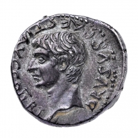 Tetradramma databile agli anni 20-21 d.C. - Zecca: Alessandria d'Egitto - Diritto: testa laureata dell'Imperatore a destra - Rovescio: testa radiata di Augusto a destra - gr. 13,58 - Non comune