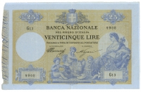 Biglietto di Stato da 25 Lire - D.M. 21.7.1895 - Molto raro - Lieve strappo lungo il bordo superiore, ma esemplare di elevate qualità e freschezza, inusuali per la tipologia