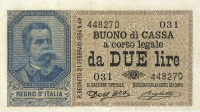 Buono di Cassa da 2 Lire - D.M. 22.2.1894 - Raro - Di alta qualità
