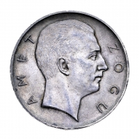 Amet Zogu (1925-1939) - 20 Franga Ari 1937 - Zecca: Roma - Diritto: effigie del Re a destra - Rovescio: aquila bicipite entro padiglione sormontato da elmo