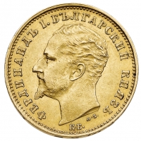 Ferdinando I (1887-1908) - 10 Santim Essai - Zecca: Kremnitz - Diritto: scudo con leone rampante a sinistra entro maestoso padiglione coronato - Rovescio: valore e data fra due rami di alloro e quercia - Molto rara - Di qualità molto buona
