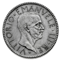 20 Lire Littore 1927 Anno V - Zecca: Roma - Diritto: effigie del Re a destra - Rovescio: littore con fascio nella mano destra saluta romanamente l'Italia seduta con fiaccola e scudo sabaudo - gr. 14,99 - Molto rara, coniata in soli 100 esemplari - q.FDC