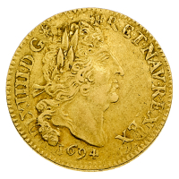 Louis XIV (1643-1715) - Louis d'or "aux 4 L" 1694 - Zecca: Parigi - Diritto: testa laureata del Re a destra - Rovescio: quattro "L" disposte diagonalmente e inframezzate da gigli coronati; al centro, entro un cerchio, il segno di zecca - gr. 6,68 - Tracce di montatura, leggi tutto