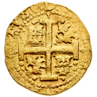 Filippo V (1701-1746) - 8 Escudos 1717 - Zecca: Lima - Diritto: le colonne d'Ercole emergono da onde marine, sormontate da una corona - Rovescio: croce potenziata accantonata da simboli di Castiglia e Leon - gr. 26,88 - Rara - SPL