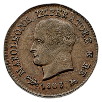Napoleone I Re d'Italia (1805-1814) - 3 Centesimi 1810 - Zecca: Milano - Diritto: effigie di Napoleone a sinistra - Rovescio: valore e zecca sotto la corona ferrea - gr. 6,20 - q.FDC
