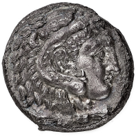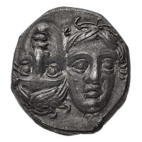 Istros - Dracma databile al periodo 340-313 a.C. - Diritto: due volti affiancati di cui uno invertito - Rovescio: aquila in volo verso sinistra con delfino fra gli artigli - gr. 5,72 - Patina di medagliere, SPL