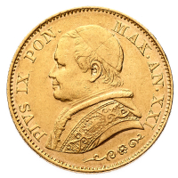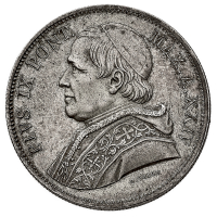 Pio IX (1846-1870) - 20 Lire 1868 Anno XXII - Zecca: Roma - Diritto: effigie del Papa a sinistra - Rovescio: valore e data entro due rami di alloro e di quercia - gr. 6,45 - Migliore di BB