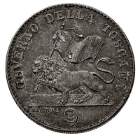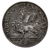 Toscana - Fiorino 1859 - Zecca: Firenze - Diritto: leone a sinistra tiene il vessillo della Repubblica con la zampa anteriore destra - Rovescio: giglio fiorentino - gr. 6,79 - Lieve graffio al diritto, ma splendida patina di medagliere, migliore di SPL