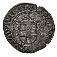 Forte di V tipo - Zecca: incerta - Diritto: stemma di Casa Savoia tra due anelli in palo - Rovescio: grande K gotica tra quattro anellini - gr. 0,84 - BB
