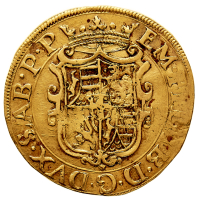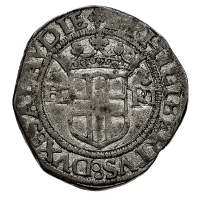 Doppia con lo stemma 1577 - Zecca: Vercelli - Diritto: stemma completo di Casa Savoia coronato - Rovescio: croce di San Lazzaro con croce mauriziana al centro, accantonata da FERT - gr. 6,71 - Molto rara - Lieve traccia di montatura, BB