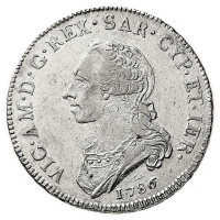 Mezzo Scudo 1786 - Zecca: Torino - Diritto: effigie del Re a sinistra - Rovescio: stemma completo di Casa Savoia coronato e circondato dal Collare dell'Annunziata - gr. 17,55 - Non comune - q.SPL