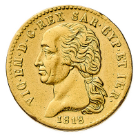 20 Lire 1818 - Zecca: Torino - Diritto: effigie del Re a sinistra - Rovescio: stemma completo di Casa Savoia coronato e circondato dal Collare dell'Annunziata - gr. 6,45 - q.SPL