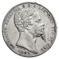 5 Lire 1861 - Zecca: Torino - Diritto: effigie del Re a destra - Rovescio: stemma di Casa Savoia coronato e circondato dal Collare dell'Annunziata - gr. 24,76 - Rara - BB